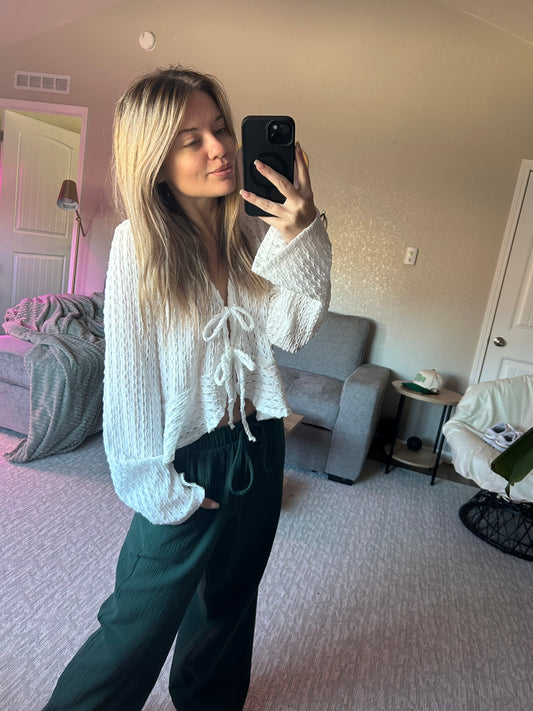 green linen pants