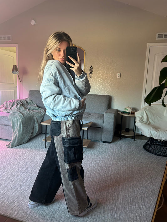paisley/denim joggers