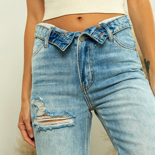 Flipped Waist Distressed Denim