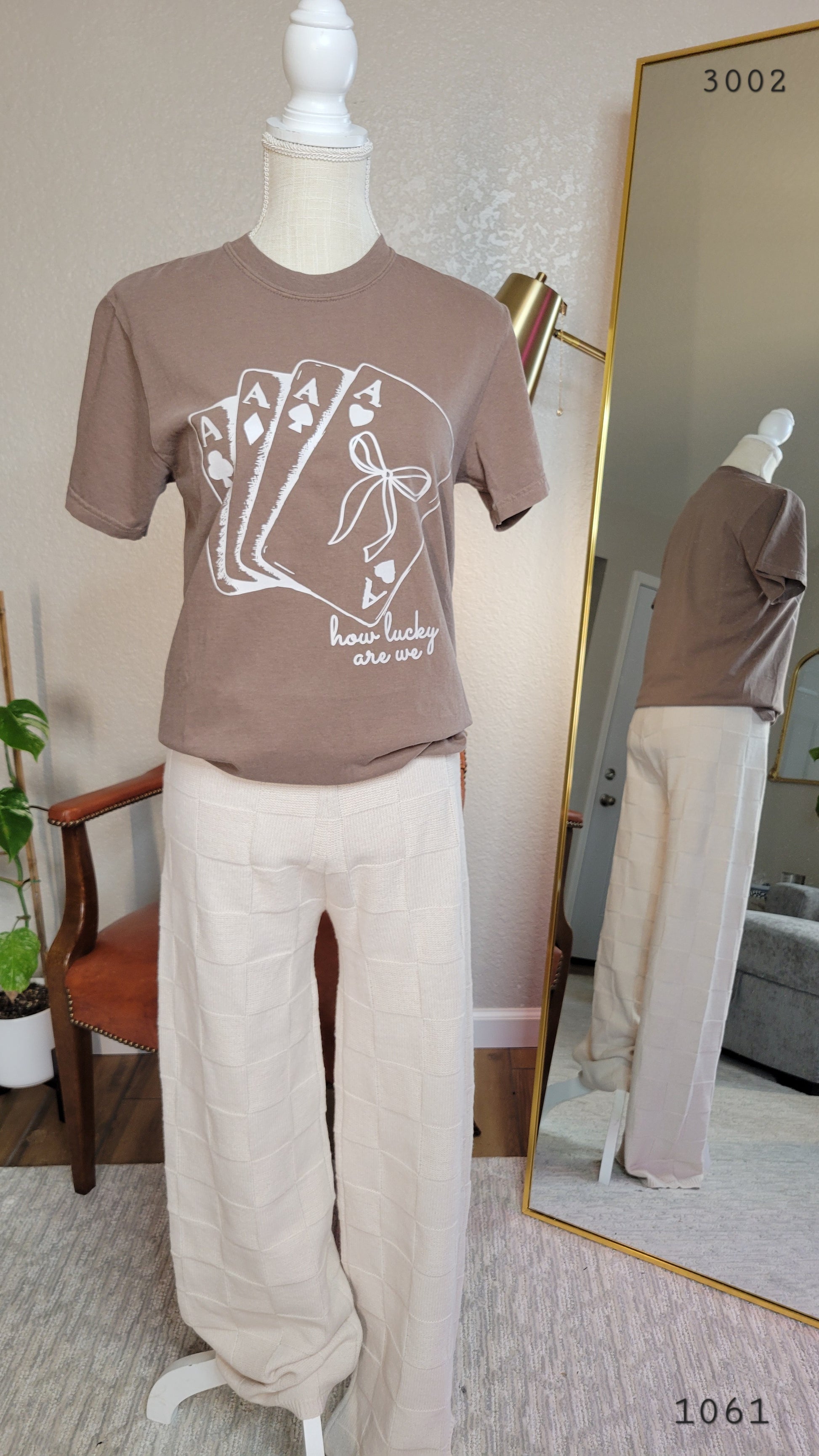 Introducing the ultimate cozy pants: our cream checker sweater pants! These knit pants feature a unique checker texture that adds a touch of playfulness to your wardrobe. But don't let their fun appearance fool you - these pants are also incredibly comfy, perfect for lounging around or running errands. Get ready to feel warm, comfortable, and stylish in our cream checker sweater pants!